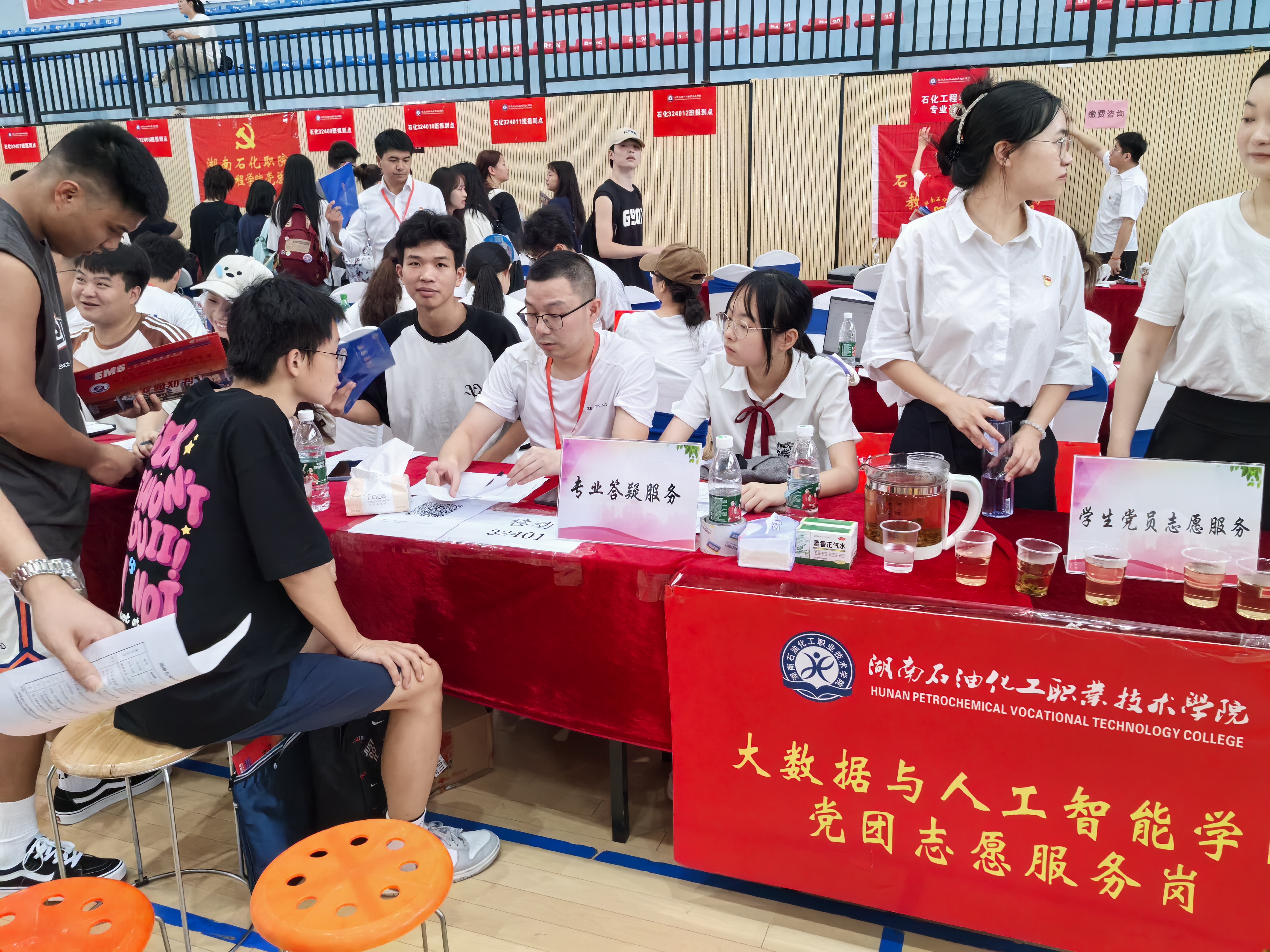 为确保新生报到流程顺畅无阻,学院党总支在报到现场精心设置了党员服务岗。身着正装、佩戴党员徽章的教师们以饱满的热情和专业的态度,主动承担起引导新生办理报到手续、解答专业疑问的重任。