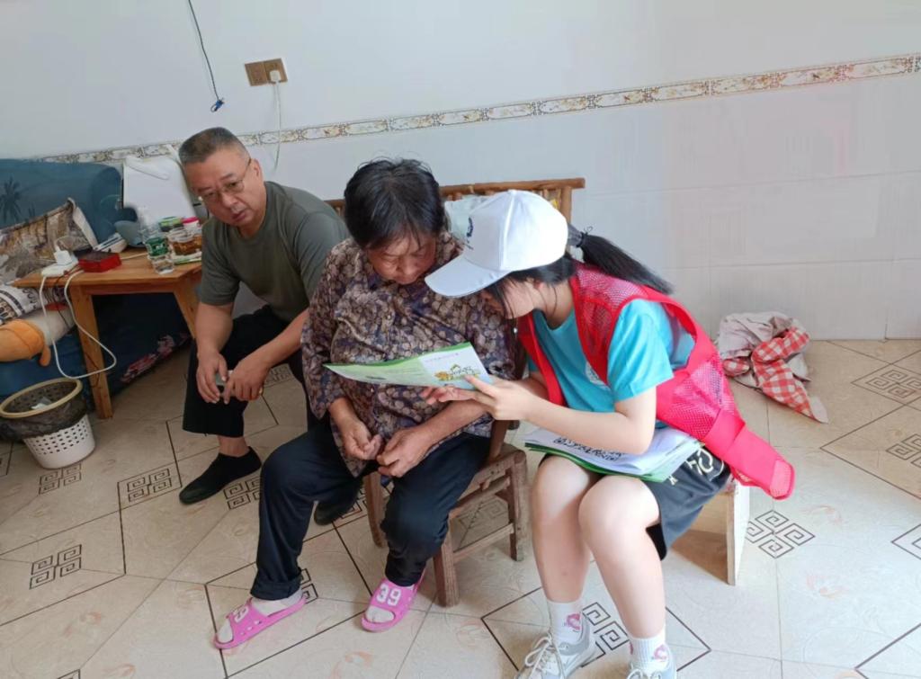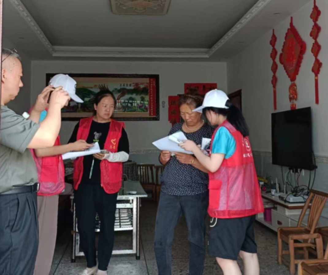 志愿者在居民家中宣传森林防火安全