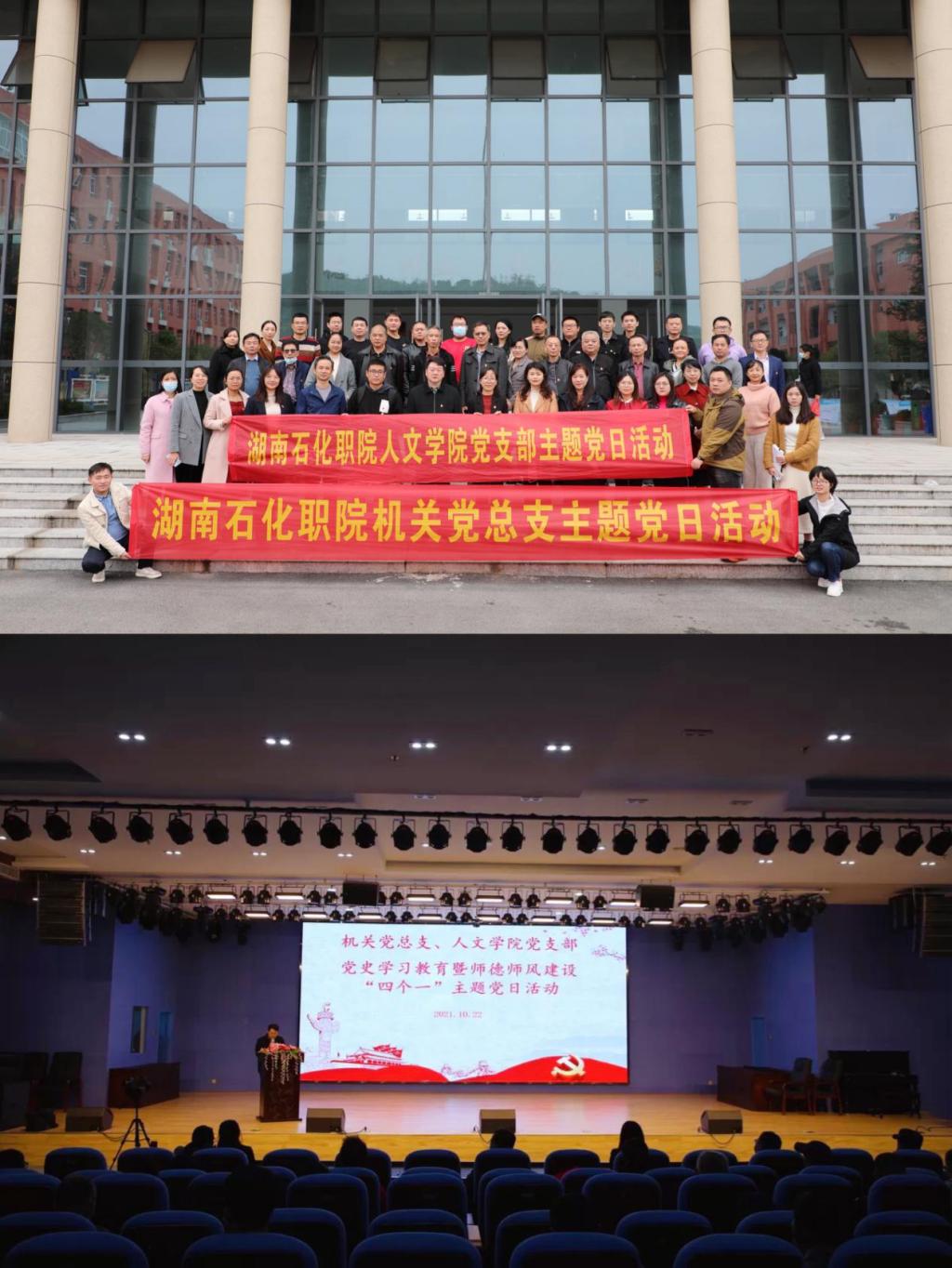 (通讯员 饶维 谢畅)10月22日下午,为紧密结合当前党史学习教育、师德师风建设和工作实际,我校机关党总支与人文学院党支部联合开展“四个一”主题党日活动。活动由机关党总支书记黎建伟同志主持,机关党总支和人文学院党支部全体党员同志参加了活动。