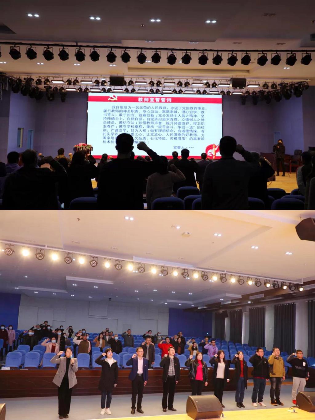 “四个一”主题党日活动由四个部分组成。在“完成一次学习教育”部分,人文学院党支部书记熊伟同志和机关党总支饶维同志领学了习近平总书记关于师德师风的重要论述,机关党总支谢畅同志介绍了“时代楷模”王红旭英雄事迹。在“许下一个庄严承诺”部分,全体党员重温了我校教师誓词。在“观看一场教育电影”部分,大家观看了电影《老师好》,再次感受了师生之间的纯真情感。在“学唱一首职业赞歌”部分,大家学习并合唱了《教师之歌》。