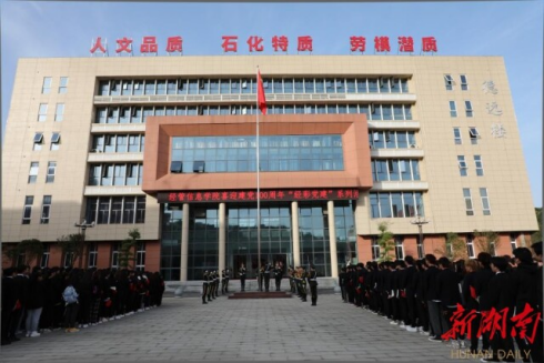 国旗下的讲话教育活动是湖南石化职院党委深入开展党史学习教育的重要载体。院党委始终把青年学子的思想政治建设放在首位,坚持从思想上“带”,让政治引领的旗帜高高飘扬起来。经管信息学院构建了涵盖“经”彩党建、“经”益创业、“经”英讲坛、“经”品社团、“经”粹文体五大模块的“五彩经管”育人体系,通过党建带团建,以团建促党建,逐步形成了“党建+育人”的党团互促互进、协同育人的良好局面