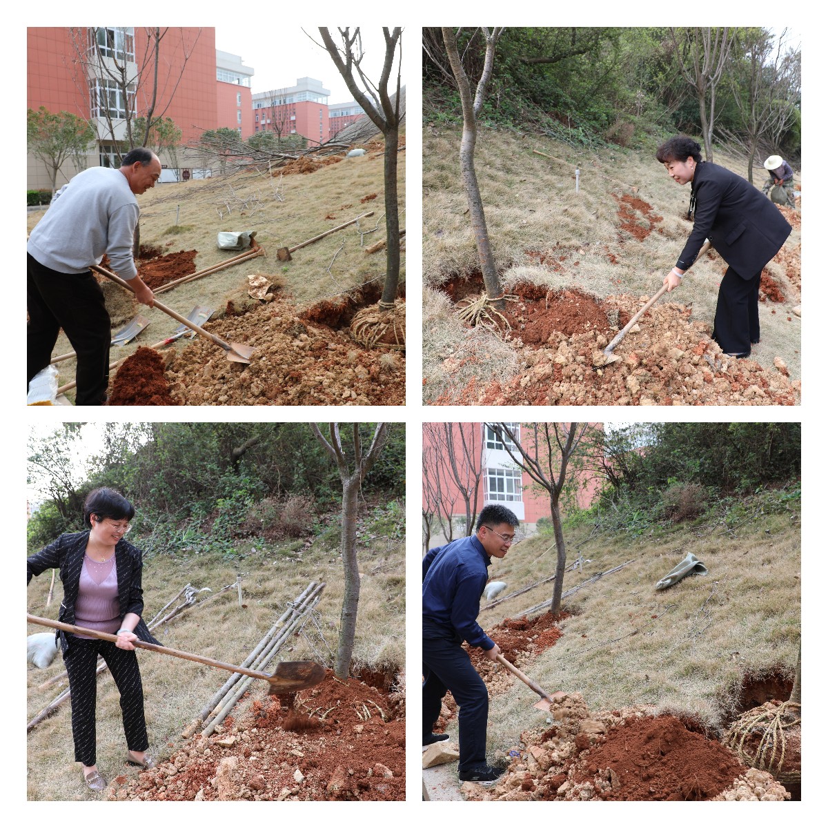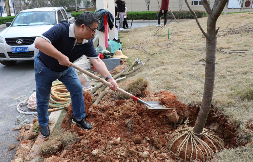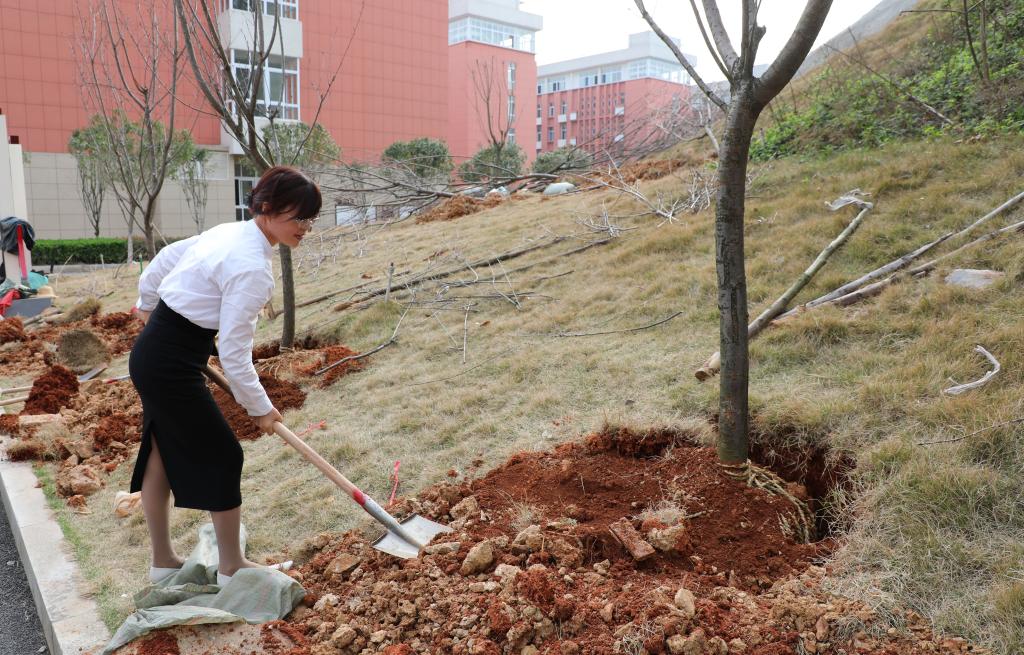 本网讯 春回大地,万物苏醒。为营造优美的学习工作环境,3月14日清早,学校党委书记雷放华、校长徐方与在家领导班子成员一道在校园内开展植树活动,种下数十棵樱花树,为春日校园增添了一份活力。