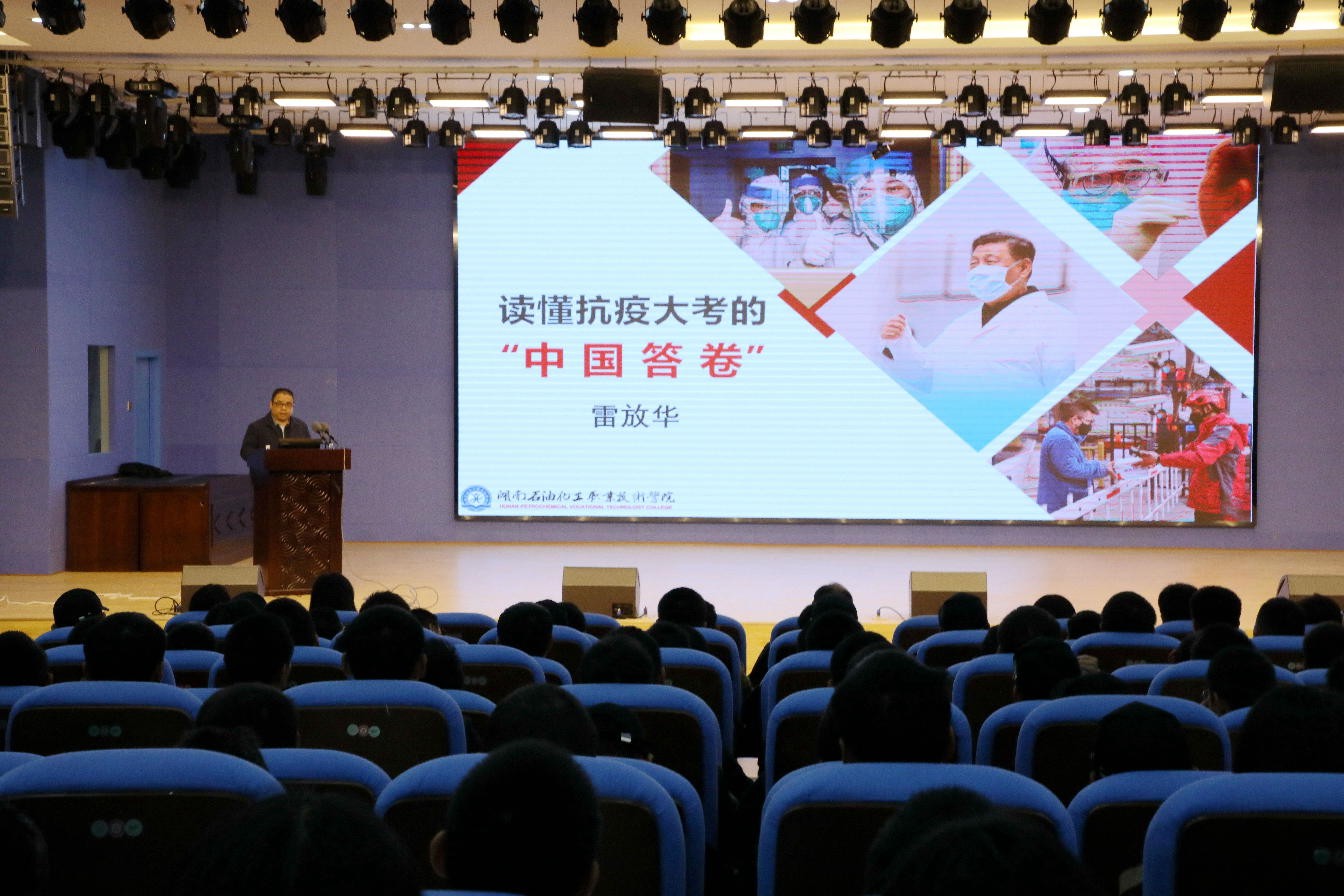 11月19日,德远楼学术报告厅座无虚席,学院党委书记雷放华以《读懂抗疫大考的“中国答卷”》为题,为学院2020级新生上了一堂立意高远、内涵丰富的专题思政课。