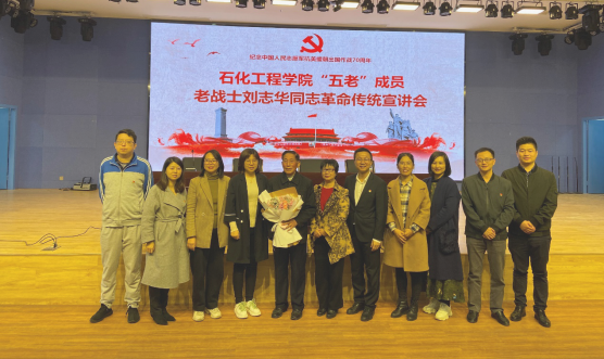 师生们首先来到了岳阳市烈士陵园向革命烈士敬献花篮,瞻仰烈士纪念碑并默哀3分钟。在石化工程学院贾金锋同志的带领下,全体党员重温入党誓词。瞻仰活动结束后,师生们回到学校学术报告厅,共同聆听85岁高龄的抗美援朝老战士刘志华同志讲述自己参加抗美援朝的故事。