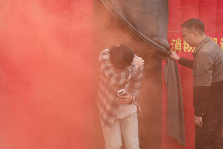 ▲学生体验浓烟逃生
