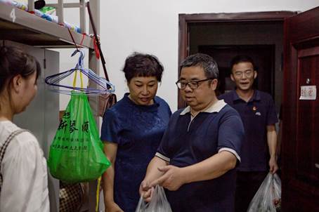 粽子煮好后,雷放华、郭丽荣和教师党员一道来到学生寝室,将热腾腾的粽子送到建档立卡贫困学生和不能回家过节的外地学生手中。雷放华、郭丽荣还亲切询问同学们的学习生活情况,并送上节日祝福。
