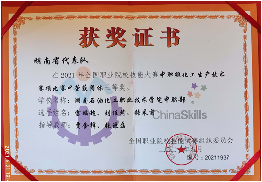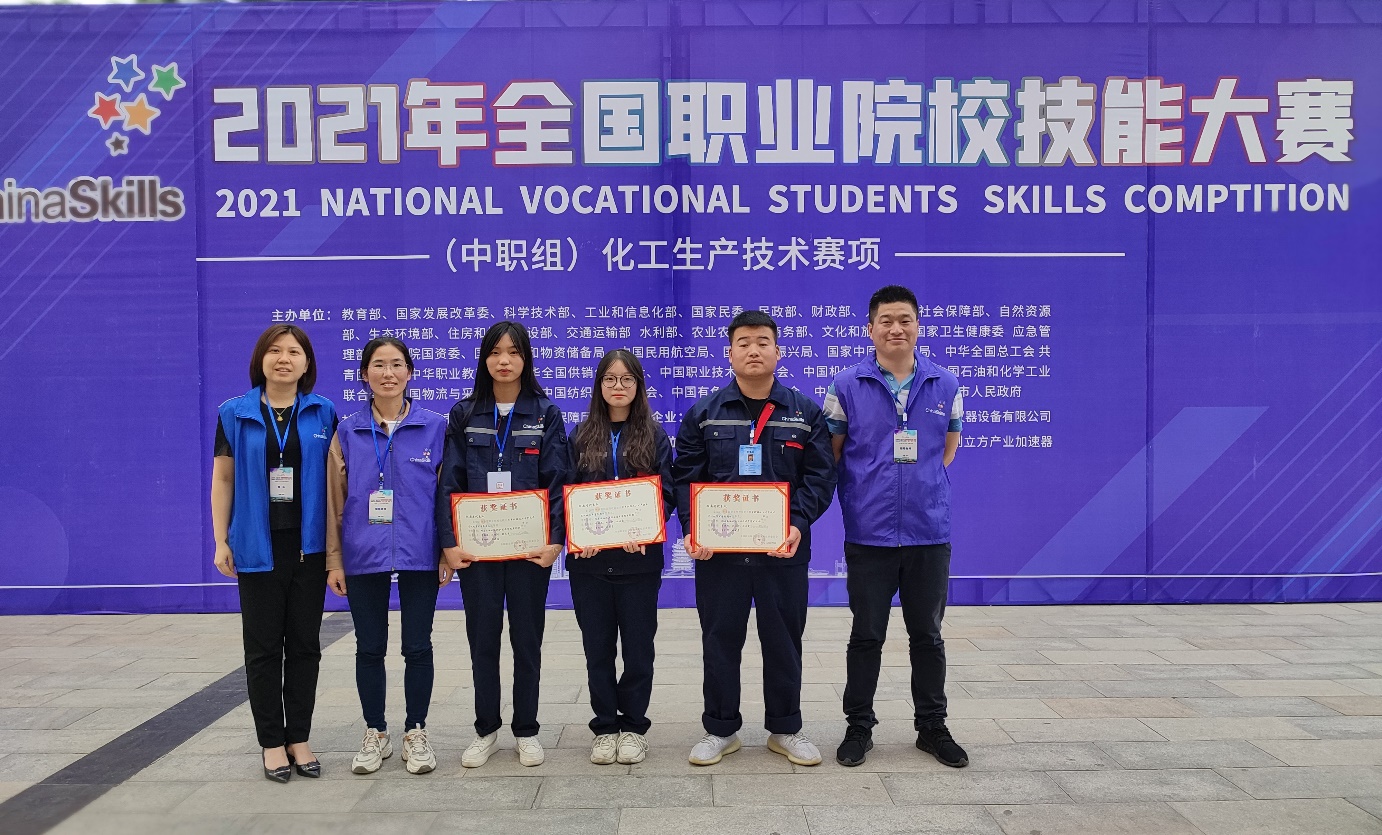 (通讯员 陈卓 贾金锋)6月21日,从兰州传来喜报。由我校石化工程学院院长万琼任领队,贾金峰、张晓磊任指导教师,石化5182班刘佳琦、张彩菊、石化5183班雷鹏超组成的代表队作为湖南省唯一一支参赛队,在2021年全国职业院校技能大赛(中职组)化工生产技术赛项中取得第9名的好成绩,荣获三等奖。这是我校中职学生连续两次参加全国职业院校技能大赛并获得佳绩。