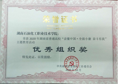 (通讯员胡永华)近日,省教育厅关工委组织召开了2021年全省教育系统关工委工作会议,会上发布了《湖南省教育厅关心下一代工作委员会湖南育才关心青少年基金会表彰通报》和《关于湖南省普通高校“读懂中国”主题教育活动征文、微视频和优秀组织奖评选结果的通报》。学院关工委推送的作品荣获三等奖2项、优胜奖2项,学院为荣获省教育厅关工委授予的2020湖南省普通高校“读懂中国·全面小康 奋斗有我”主题教育活动优秀组织奖的33所高校之一。