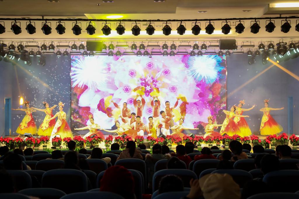 在典礼上,教职工们还带来了精彩的文艺表演。既有体现不同年代教师与学校同呼吸、共成长的音诗画《传承的力量》,也有展现我校党史学习教育情况的情景剧《信念永恒》,还有表现学校党务工作者齐心干事创业的舞蹈《共画发展同心圆》。九个类型各异、风格多样的表演节目围绕“传承”“绽放”“追梦”三个篇章展开,充分彰显了我校教职工的别样风采。