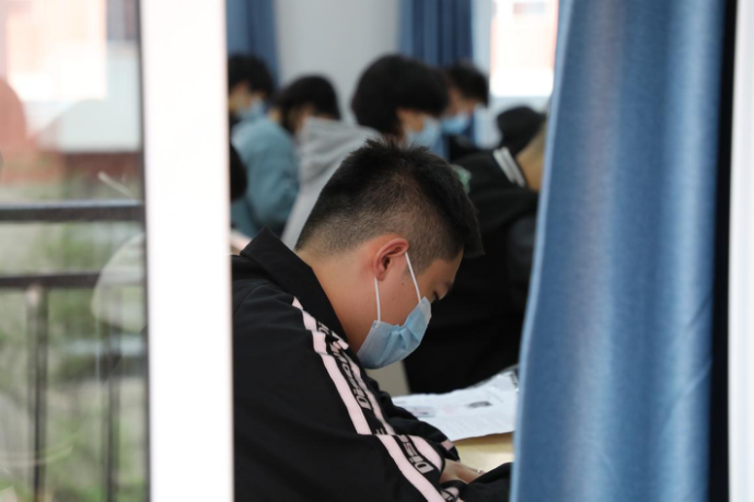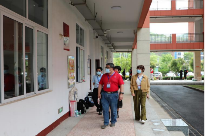 考前,学校从校门到考场设置了专用的考场通道,由老师和学生志愿者组成的防疫工作组在校门口完成了对考生的体温检测、查看健康码和48小时以内的核酸阴性证明以及查验准考证等工作,努力为考生营造安全有序的考试氛围。