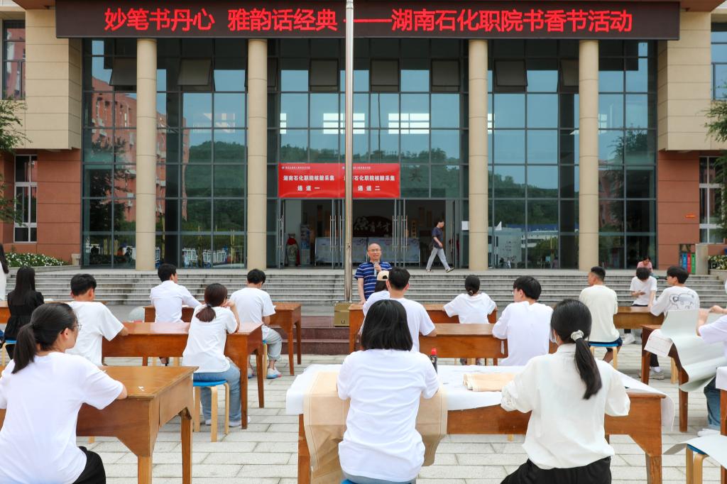 本网讯 墨韵飘香沁心扉,夏日初长好读书。5月30日下午,我校思源广场上飘来阵阵墨香,传来朗朗笑声,由人文学院主办的“妙笔书丹心,雅韵话经典”——湖南石化职院书香节活动热闹开场。
