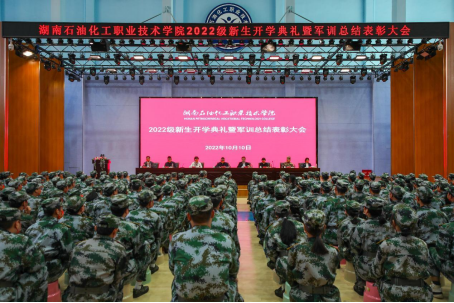 在开学典礼上,雷放华代表学校欢迎2780名新生的到来,介绍了2022级新生的基本情况,特别指出有三位同学高考分数超过了生源地物理类本科线,欣然选择我校学习深造,充分反映出学校在石油化工行业中具有较高的知名度和美誉度。雷放华表示,广大学子应心怀“国之大者”,做志存高远的湖油人;应加强思想道德修养,做践行“五德”的湖油人;应练就过硬本领,做技艺精湛的湖油人;应永葆奋斗精神,做埋头苦干的湖油人。他真诚地希望,广大师生一道携手同行、勠力同心,共同撑起湖南石化职院的美好明天。