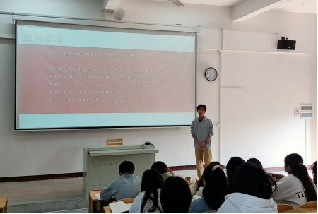 “金句来习小课堂”是利用课堂前五分钟,采用学生分组、自主讲学的方式,选取党的二十大报告中与授课内容相关的“金句”,结合所学专业进行解读。学生在任课老师的指导下,课前自主选取内容、自主制作课件,课上由小组代表讲学并分析典型案例,引发学生自主讨论,最后由任课教师进行点评和总结。该活动大大提高了学生学习党的二十大精神的积极性,增强了党的二十大精神的宣传效果,同时也是思政课教学形式的新探索。