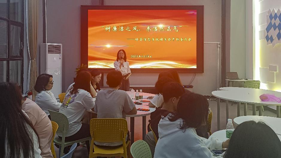 本网讯 为进一步加强学生干部思想政治教育,打造一支风清气正的学生干部队伍。4月19日,经管信息学院在学校创新创业孵化基地召开了“树廉洁之风,养浩然正气”学生干部座谈会。参加本次活动的有经管信息学院党总支副书记熊伟、全体辅导员老师、全体团学干部。