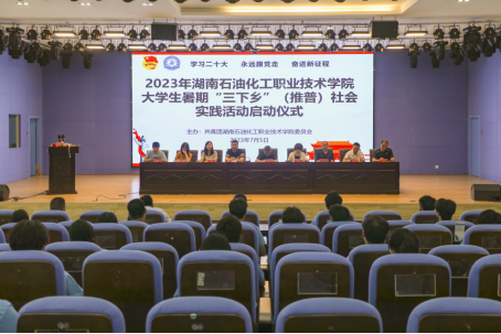 本网讯 7月5日,我校2023年暑期“三下乡”社会实践活动启动仪式在学术报告厅举行。学校党委书记雷放华,党委副书记、校长徐方,党委委员、学生工作部部长湛佳出席,各二级学院党总支书记、校团委负责人及各二级学院团总支书记参加。会议由校团委副书记张锟主持。