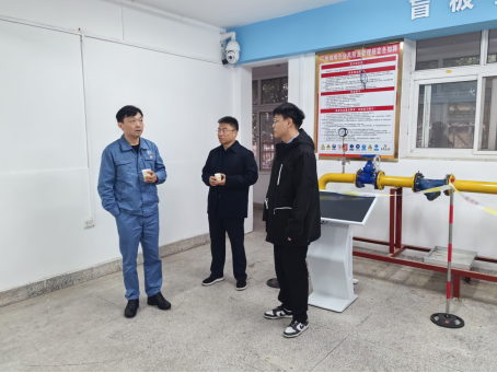 随后,刘峰一行移步至实践操作区。这里模拟了多种危险场景,如火灾扑救、泄漏处理、电工作业、断路作业、盲板抽堵、高处作业等八大作业环节实操训练区。我校培训师现场演示了应对突发情况的正确操作流程,展示了基地注重实践能力培养的教学特色。