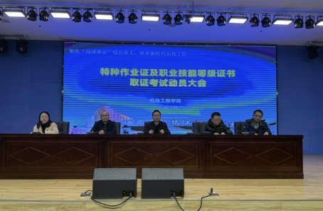 本网讯 3月10日下午,机电工程学院在学术报告厅召开2023级学生特种作业及职业技能等级证书取证考试动员大会。学院主要负责同志、电气自动化技术专业、工业过程自动化技术专业负责人参加了会议。