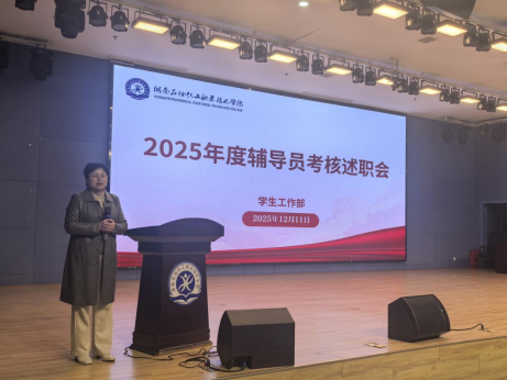 本网讯 为深入落实立德树人根本任务,加强辅导员队伍建设,充分发挥述职考核的激励导向作用。12月11日晚,学生工作部在学术报告厅组织开展2025年辅导员考核述职会。学校副校长符文文,党委委员、学生工作部部长湛佳,全校学工队伍成员参会。