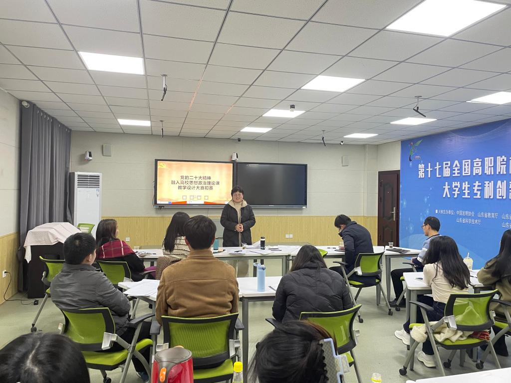 赛场上,思想道德与法治、习近平新时代中国特色社会主义思想概论和毛泽东思想和中国特色社会主义理论体系概论三个教研室共计14名教师“八仙过海,各显神通”,分别以所教课程为载体,结合党的二十大精神,从教材分析、学情分析、教学目标、教学过程、教学方法、教学效果等方面展示了党的二十大精神全面融入思政课程的教学设计,展示了各具特色的教学风采和理论功底。