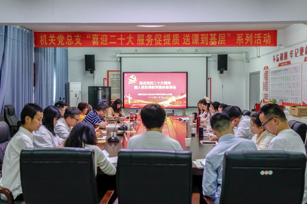 本网讯  “要把学习领会党的二十大精神与思政课教学紧密结合”“可以采用课前五分钟的方式,师生共读同赏党的二十大金句……11月10日下午马克思主义学院以下简称“马院”)“党的二十大精神进课堂”集体备课会上马院院长姚霞领学党的二十大报告思政课教师们紧扣党的二十大精神,围绕理论与实践相结合、相关教学科研重点、教学方式方法等展开热烈研讨党的二十大精神已然成为思政教学的“助燃剂”
