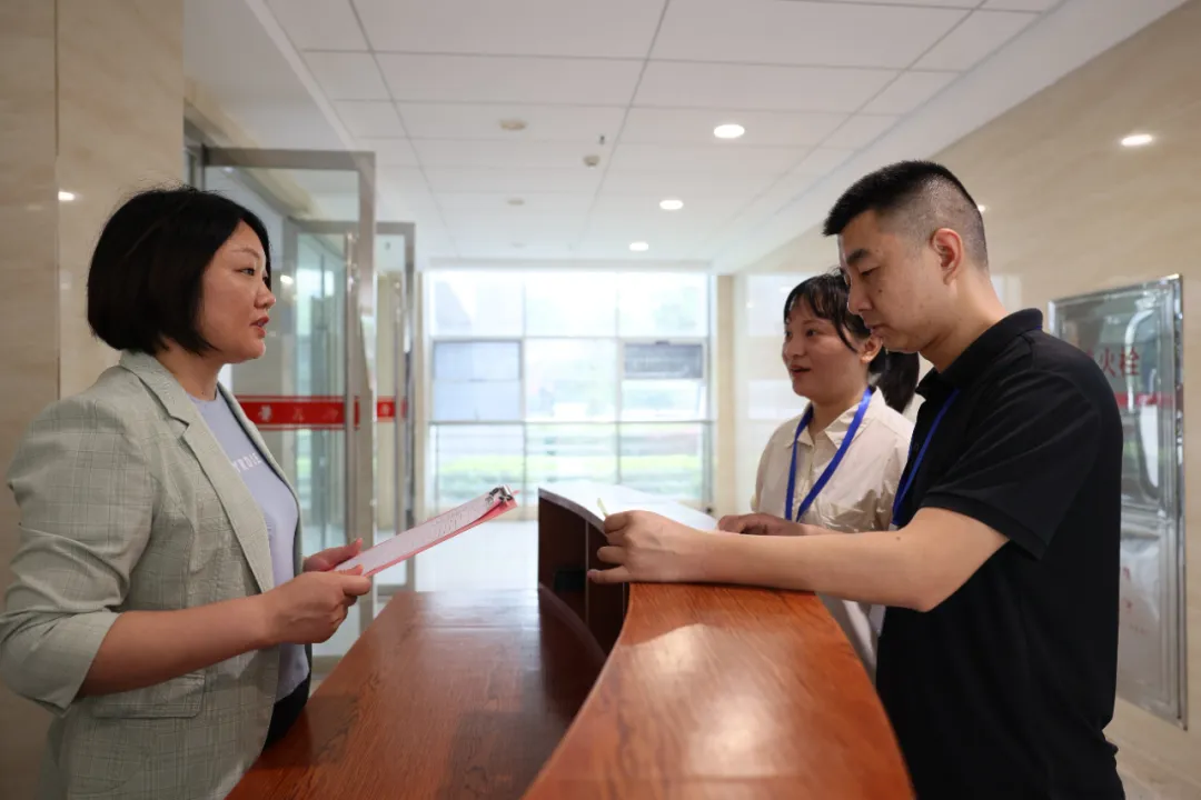 南县纪检监察干部在某单位机关食堂查阅菜单和订餐记录,排查是否存在违规公务接待。(图/林静柔)