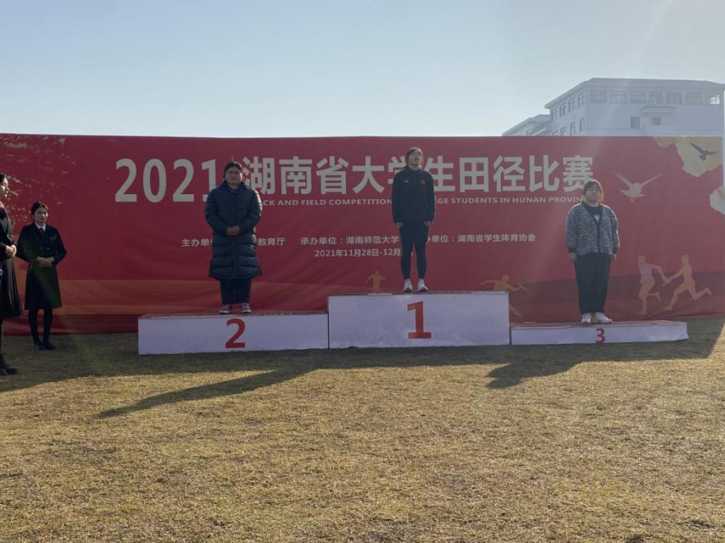 献青春力量,展别样精彩。为期5天的2021年湖南省大学生田径比赛于今天上午完成全部赛程,我校由汤勇、田刚两位老师带队5名学生组队参赛,石化32104班彭嫔同学分别获得高职女子组铅球第二名(11.05米,破我校记录)和铁饼第二名(38.5米,创我校记录),石化32104 班姜辉同学获得高职男子组标枪第四名(46.39米)。