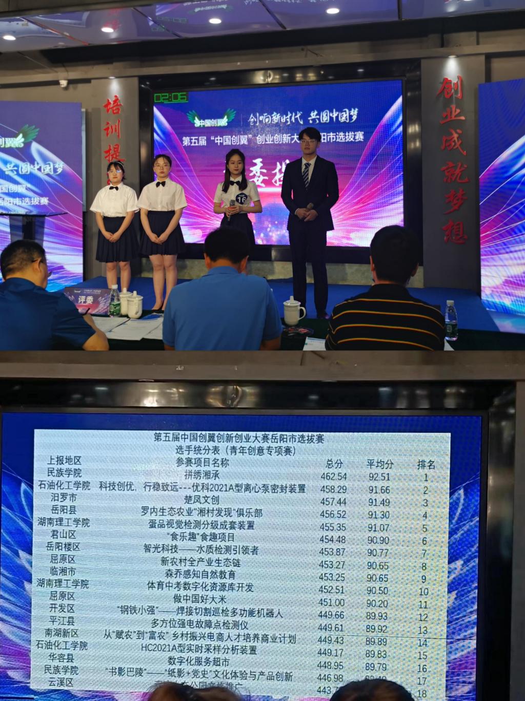 在刚刚结束的第五届“中国创翼”创业创新大赛岳阳市决赛中,我校参赛项目:《“密”不可分,“泵”发精彩》取得第二名的好成绩,是我校在历届历次岳阳市创新创业竞赛中取得的最好成绩和新的突破。