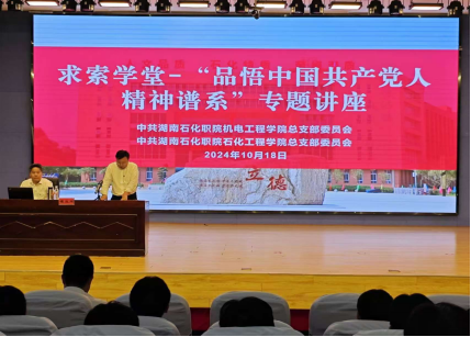 为深入实施时代新人铸魂工程,传承好红色基因,教育引导广大师生做挺膺担当奋斗者,10月18日下午,机电工程学院党总支在德远楼学术报告厅举办“品悟中国共产党人精神谱系”专题讲座,讲座由机电工程学院副院长何湘龙主持。湖南省党的建设研究会理事,岳阳市委党校、岳阳行政学院、社会主义学院原副校(院)长霍益辉教授受邀作专题辅导,学院党员和入党积极分子参加讲座。