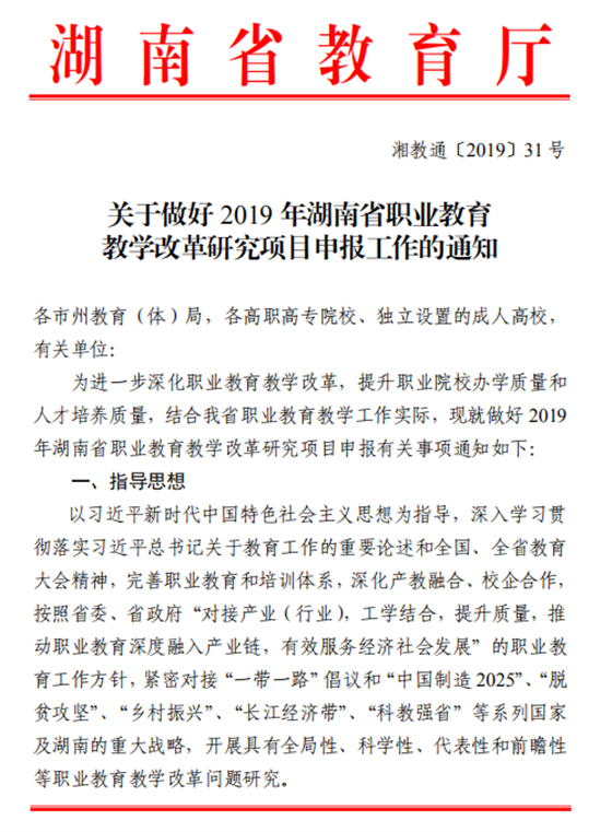关于做好2019年湖南省职业教育教学改革研究项目申报工作的通知(湘教通〔2019〕31号).pdf