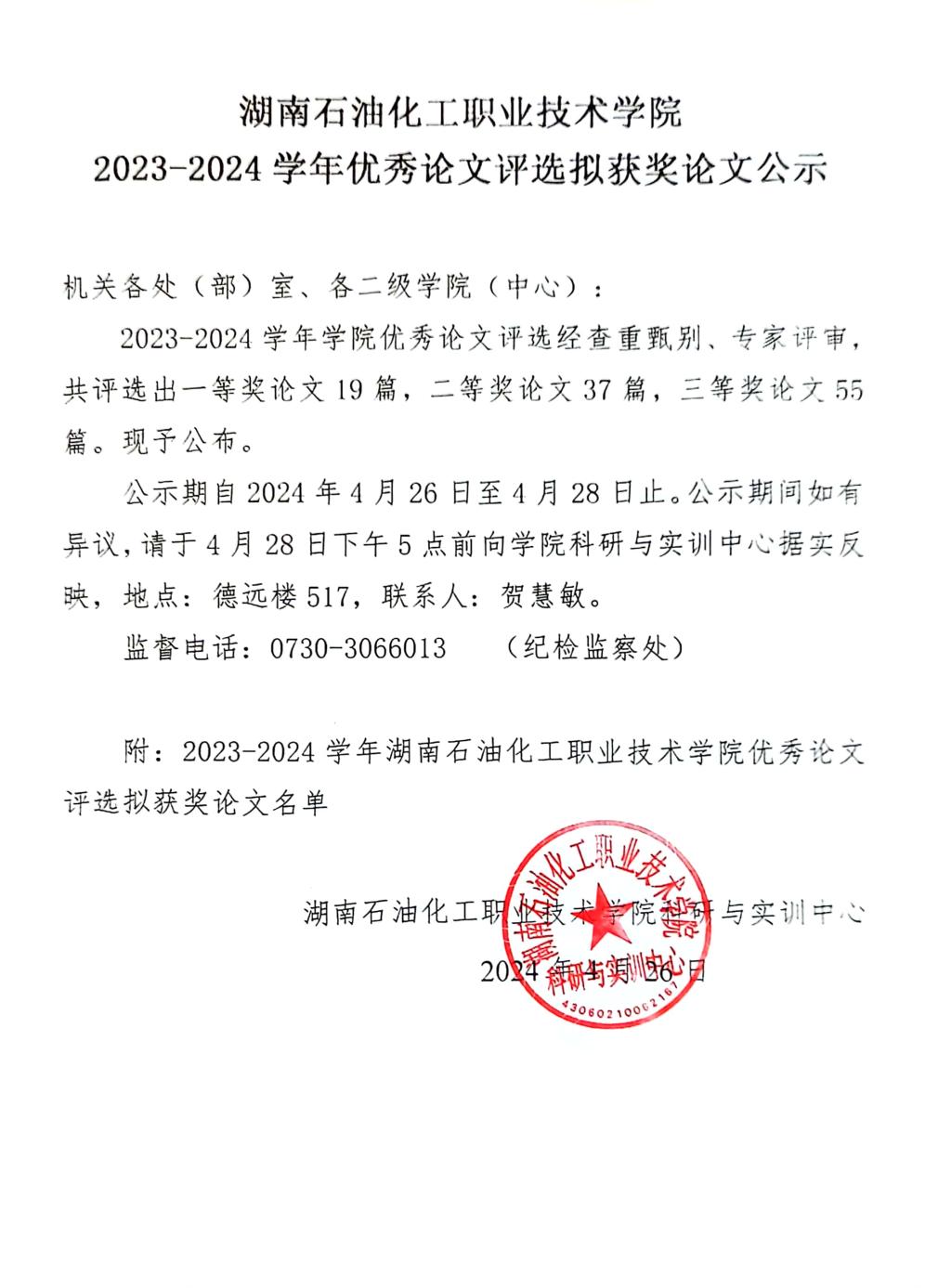 2023-2024学年87978797威尼斯老品牌优秀论文评选拟获奖论文名单