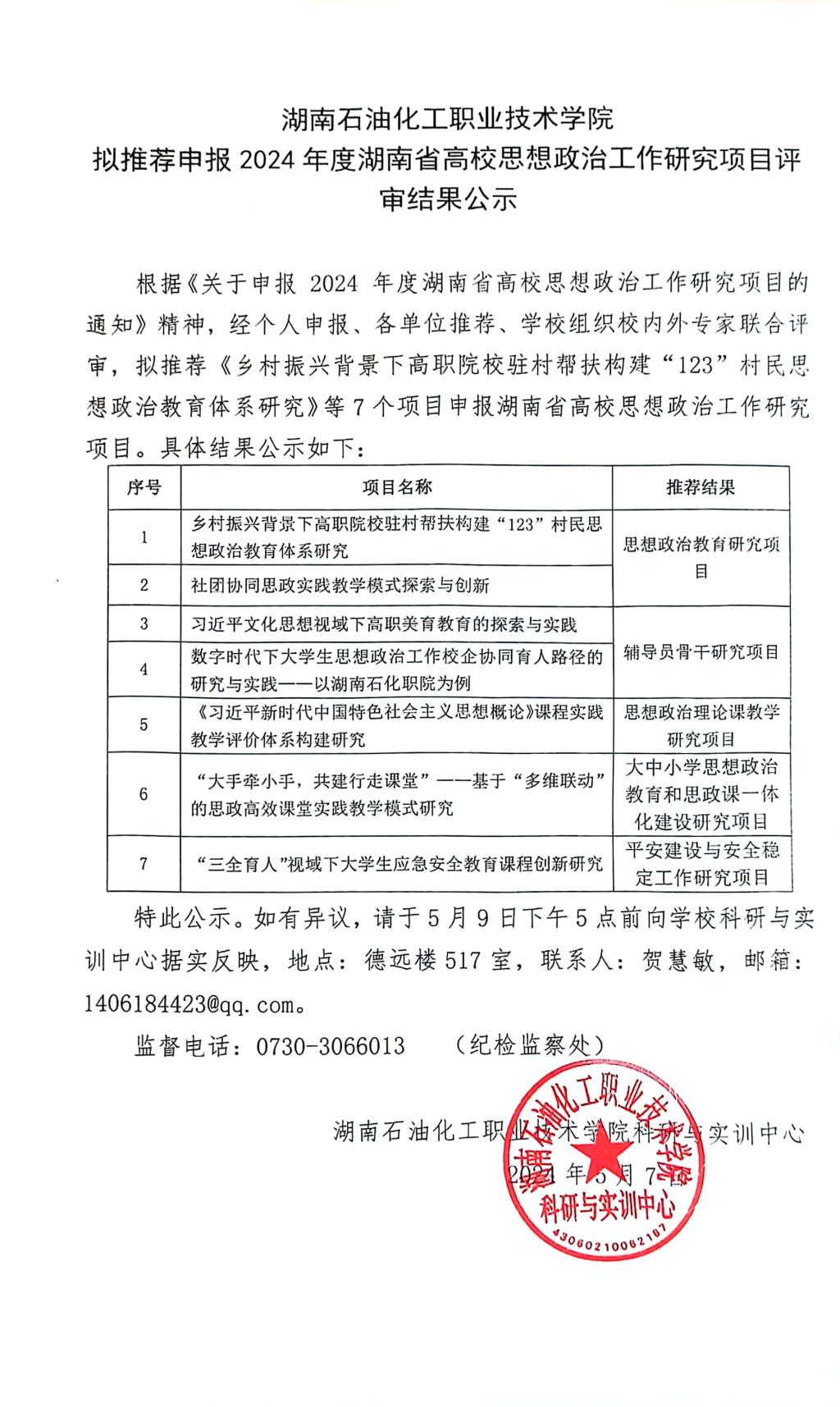 87978797威尼斯老品牌拟推荐申报2024年度湖南省高校思想政治工作研究项目评审结果公示