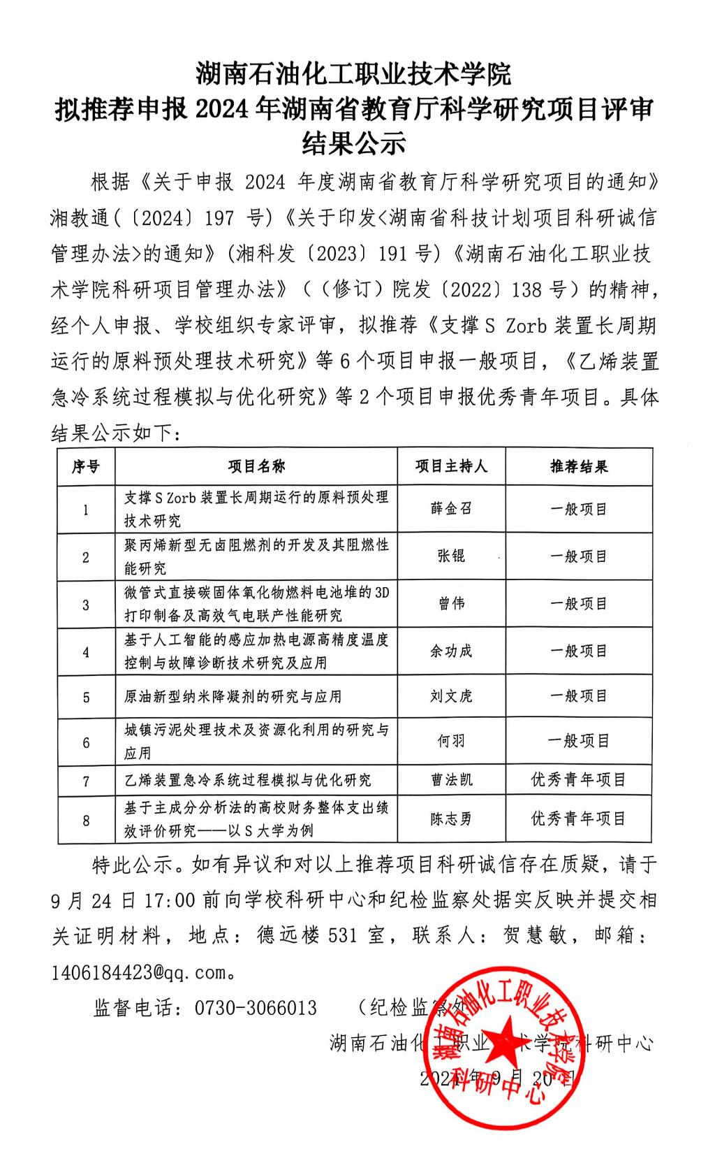87978797威尼斯老品牌拟推荐申报2024年湖南省教育厅科学研究项目评审结果公示