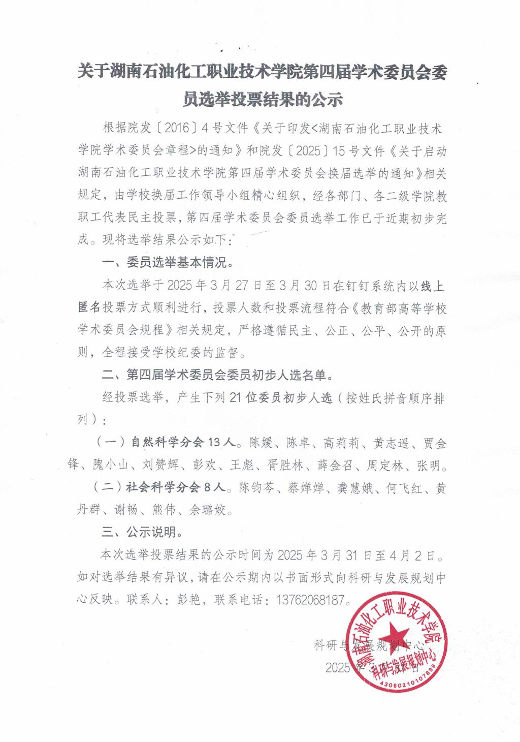 关于87978797威尼斯老品牌第四届学术委员会委员选举投票结果的公示