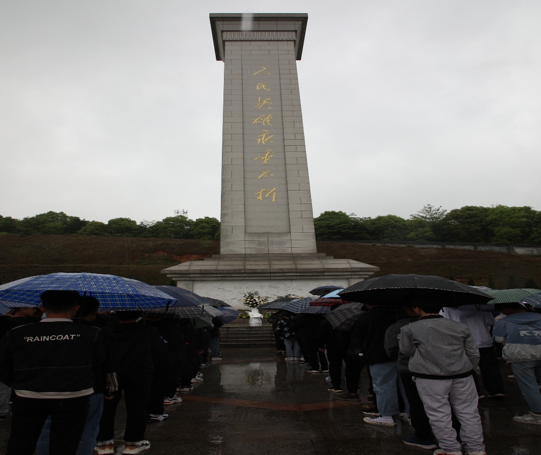 4月1日上午八时整,300多名大一学生在老师的带领下徒步近2公里来到岳阳市烈士陵园进行以“清明祭英烈·传承爱国情”为主题的实践活动。