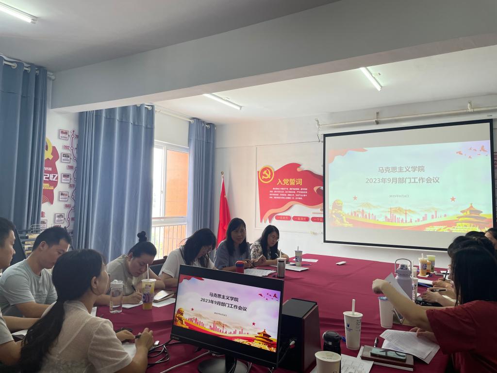 9月8日上午,马克思主义学院组织召开2023年9月部门工作会议,全体教师参加会议,会议由马克思主义学院院长姚霞主持。