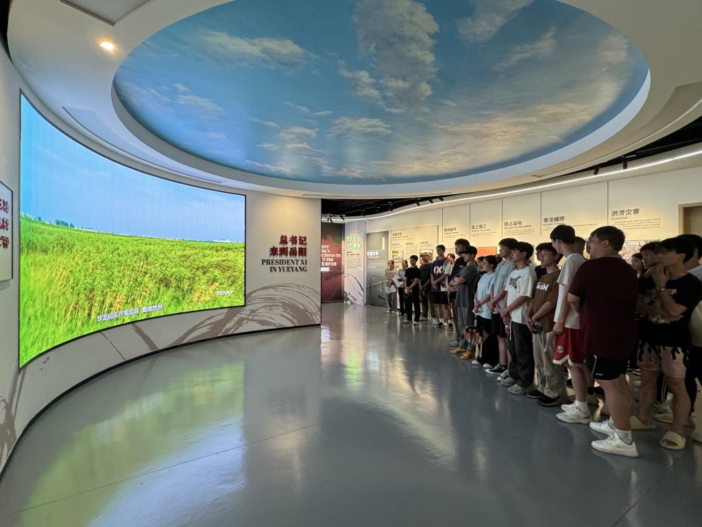当天下午,师生分三组依次有序进入场馆,在讲解员的细致讲解下沉浸式参观“壮丽山河 万里长江”“长江:母亲之河”“总书记来到岳阳”“守护好一江碧水”“逐梦人类文明新形态”“美美与共 天下大同”6个主题展区,通过馆内图片、文字视频、影像技术等丰富多彩的形式,看到了洞庭湖“候鸟的欢歌”“江豚的微笑”“麋鹿的倩影”,身临其境感受到岳阳流水绕城、大江大湖的生态底色。