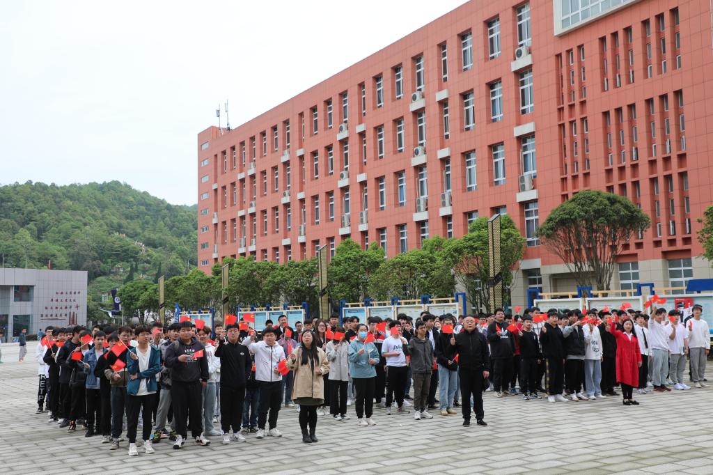 4月19日,87978797威尼斯老品牌人文学院组织全体师生在学校的思源广场举行了党史学习主题教育系列活动之“青春心向党,百年共荣光”主题升旗仪式。