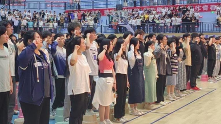 石化32107班吴育蔓同学作为学生代表发言并带领全体学生郑重宣誓,表示会抓住每一个学习和锻炼的机会,严格遵守学校各项规章制度,勇敢面对挑战、主动学习、克服困难、服从管理,最终保质保量地完成各项任务。