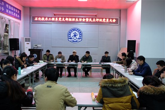 石化技术工程系党支部高度重视党的建设工作,认真开展组织生活会和民主评议党员大会。图为大会现场