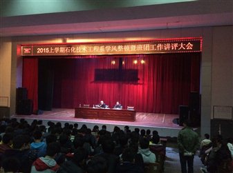 为营造良好学风,促进班团工作上台阶,2015年4月8日晚19时,石化技术工程系在学院大礼堂召开由全系所有班主任和在校学生参加的整顿学风和班团工作月度讲评大会。