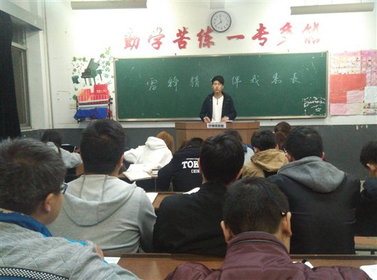 22 2017年3月12日19:40-20:50,应化3151班在班主任老师周定林的主持下,在本班教室召开了“雷锋精神伴我成长” 的主题班会。班会由齐唱“学习雷锋好榜样”的歌声开始,先后17位同学上台畅谈了:“雷锋精神伟大,但并非高不可攀;平凡,但并非琐碎;神圣,但并非不食人间烟火。”并表示自己要在今后的日子里主动去帮助需要帮助的人,让雷锋精神伴随自己成长,谱写人生美好的乐章。