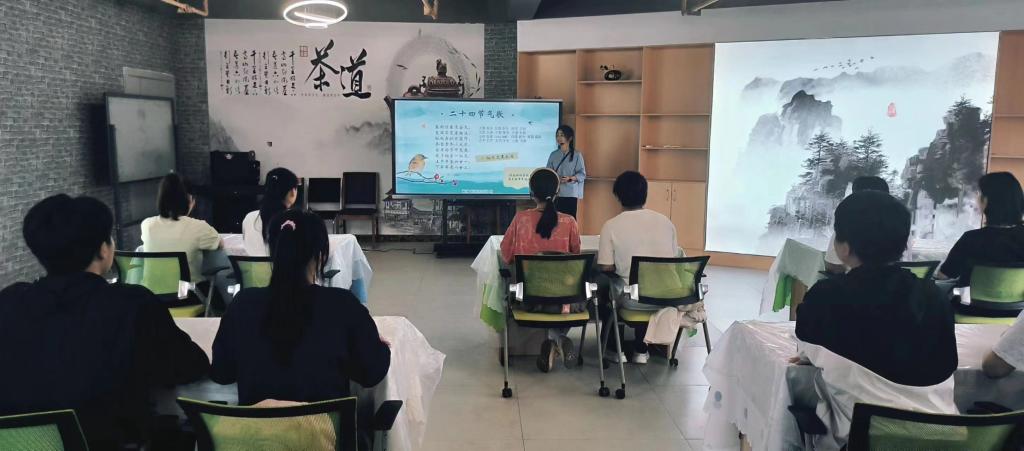 活动开始,图书馆彭艳老师讲述了谷雨祭仓颉的民间传说和背后的美好祝愿,介绍了谷雨以茶会友、以茶敬客的传统习俗,细细阐述了“谷雨春光晓,山川黛色青”谷雨时节的自然春光;接下来各位老师和同学分别分享了自己独特的阅读生活和人生感悟,并师生共读经典文学作品,传递书香文化魅力,营造悦读氛围;随即同学们以“书”为题,玩起了以文会友的传统游戏——飞花令,通过吟诵古诗词,激起了同学们重新学习古诗词的热情,展现了积极向上的精神风貌。