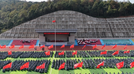 大会在庄严的国歌声中拉开序幕。随后,武警湖南总队岳阳支队教官组织进行了精彩的军训科目展示,包括队列展示、匕首操表演和擒敌拳表演,充分展现了2025级新生在军训期间锤炼出的纪律意识和团队精神。