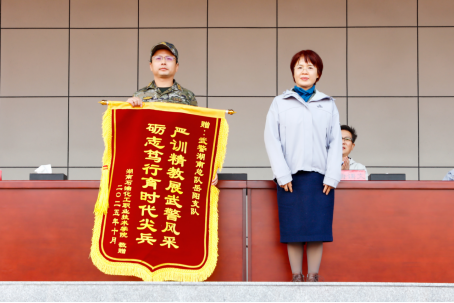 大会还表彰了在军训中表现突出的先进集体和个人、2024-2025学年度先进班集体和优秀个人以及优秀学生奖学金获得者。学校党委书记徐方为武警湖南总队岳阳支队授予了锦旗,感谢全体教官的辛勤付出与无私奉献。