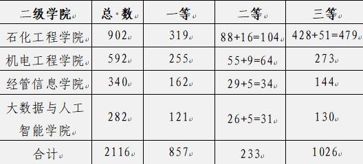 (注明:根据上级文件精神,农林水地矿油核师等国家需要的特殊学科(专业)本专科生、基础学科和国家亟需学科的研究生予以适当倾斜,不能搞“一刀切”。我校按照上级文件要求,从省资助中心下达的国家助学金三等指标中向石化工程学院倾斜5%。)
